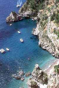 Da Amalfi, ma anche da Positano e dalla spiaggia della praia di Furore è possibile prendere battelli e barche che costeggiano la costa per raggiungere le spiagge più belle e le mete immancabili, godendo del magnifico scenario della costiera amalfitana vista da un altro punto di vista. Si raggiungono così le spiagge di Duoglio e Santa Croce, l’Isola di Capri coi suoi faraglioni e l’isola parco naturale Li Galli, si ci sposta tra Amalfi e Positano lungo un percorso dai colori unici (escursioni e trekking)