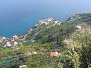 È come se la costa fosse divisa a spicchi longitudinali, ogni frazione, ma è la stesso per quasi tutti i paesi della Costa, ha una parte bassa che dà sul mare, ed una parte alta completamente immersa nei terrazzamenti di limoni o di viti, o ancora nelle scoscese radure di olivo.